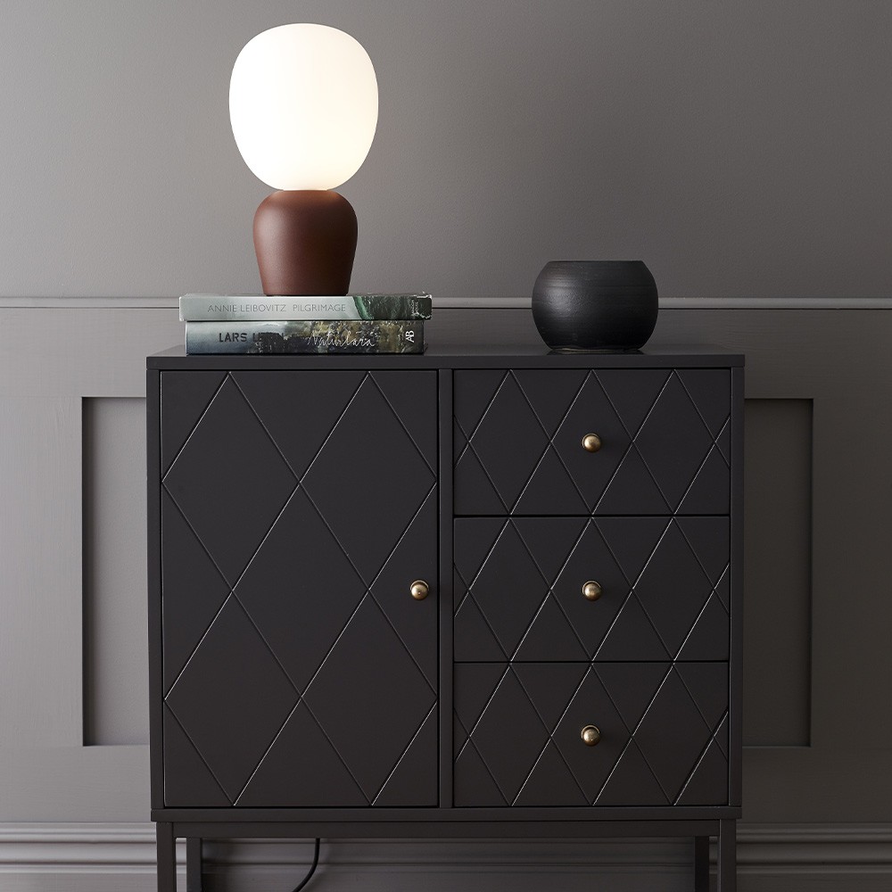 Entdecken Sie die wunderschöne Tischlampe Buddy mit ihren weichen Formen. Dank ihres Designs passt sie in jedes Interieur. In der Mitte eines Tisches, auf einer Kommode oder sogar als Nachttischlampe platziert, wird sie durch das weiße Opalglas der Leuchte Licht spenden, ohne zu blenden.