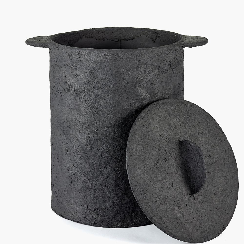Korb mit Deckel Leinenbeutel schwarz Papier Mache Earth by Serax