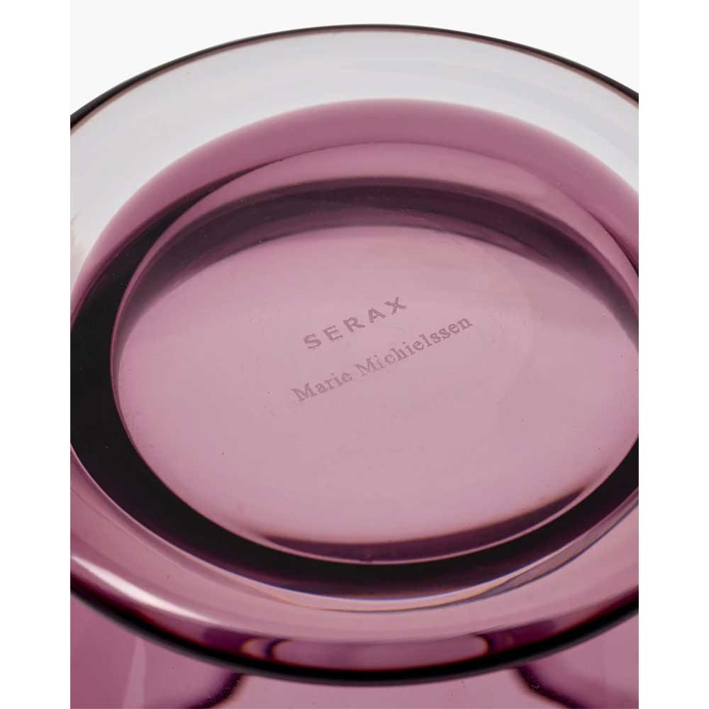 Die von Marie Michielssen entworfene Vase Marie-Ann interpretiert eine archetypische Form in einem hellvioletten Glas neu. Der Kontrast zwischen der glatten Transparenz des Glases und dem rauen Aussehen des für die Kollektion üblichen roten Sandsteins erzeugt einen starken visuellen Effekt. Ein Stück, das gleichzeitig zart, raffiniert und charaktervoll ist.