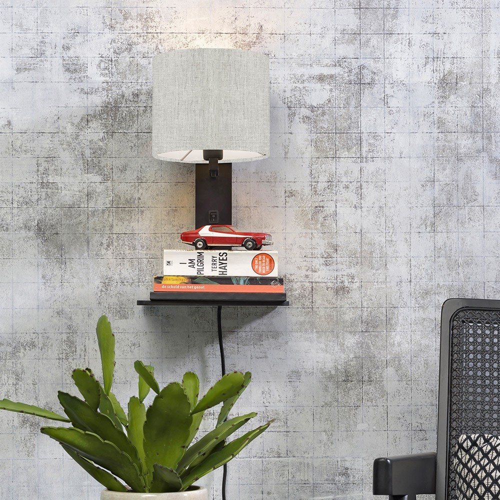 Entdecken Sie hier die Wandleuchte und das Regal aus schwarzem und hellem Leinen aus den Anden, die von der Marke Good & Mojo entworfen wurden. Diese Lampe, die auch als Regal dient, besteht aus Bambus und ökologischem Leinen. In einem skandinavischen und umweltbewussten Stil verleiht es Ihrem Interieur einen Designer- und Original-Touch. Diese Lampe eignet sich perfekt in einem Schlafzimmer über einem Bett zur Aufbewahrung Ihrer Abendlesungen oder in einem Wohnzimmer in der Nähe des Sofas.
