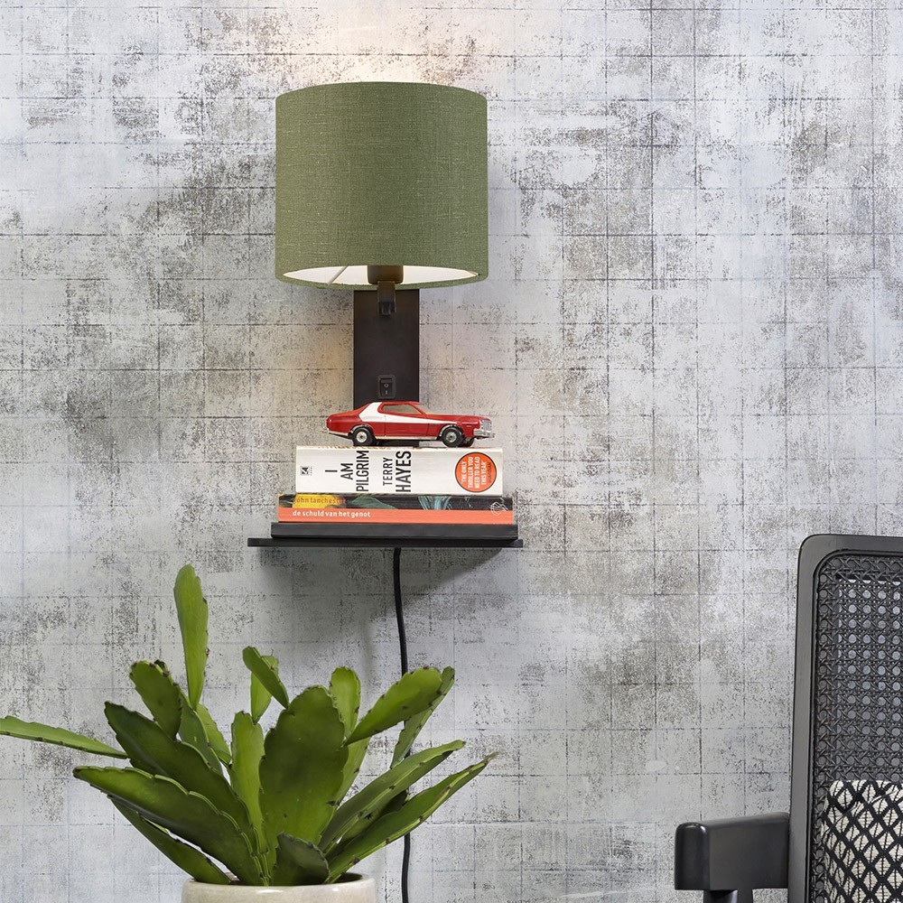 Entdecken Sie hier die schwarz-waldgrüne Wand- und Regalwandleuchte Andes der Marke Good & Mojo. Diese Lampe, die auch als Regal dient, besteht aus Bambus und ökologischem Leinen. In einem skandinavischen und umweltbewussten Stil verleiht es Ihrem Interieur einen Designer- und Original-Touch. Diese Lampe eignet sich perfekt in einem Schlafzimmer über einem Bett zur Aufbewahrung Ihrer Abendlesungen oder in einem Wohnzimmer in der Nähe des Sofas.