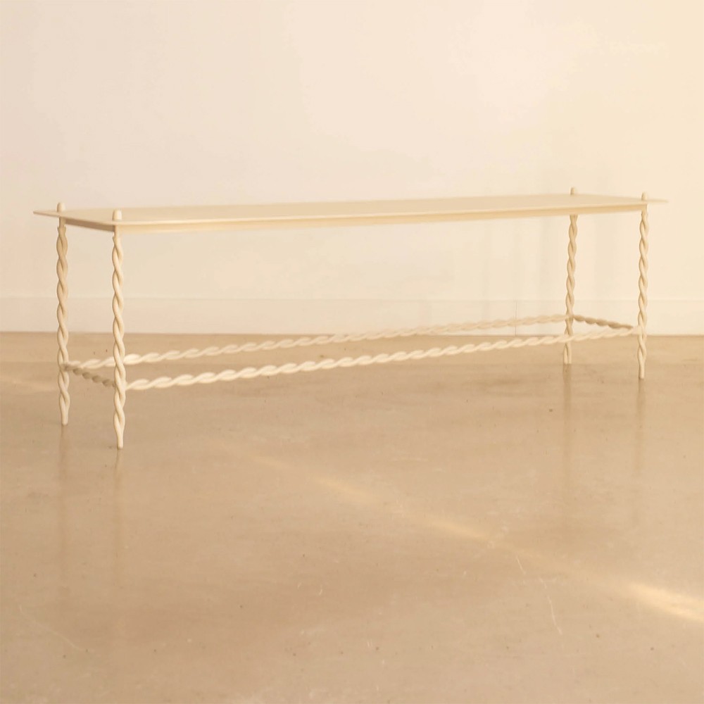 Die Bank Torsade verkörpert diese subtile und elegante Neuinterpretation. Ihre gedrehte Struktur verleiht ihr einen einzigartigen Stil, der sowohl retro als auch absolut zeitgemäß ist. Sie wird natürlich ihren Platz vor einem Bett, hinter einem Sofa oder auch als niedrige Konsole in einem Eingangsbereich finden.