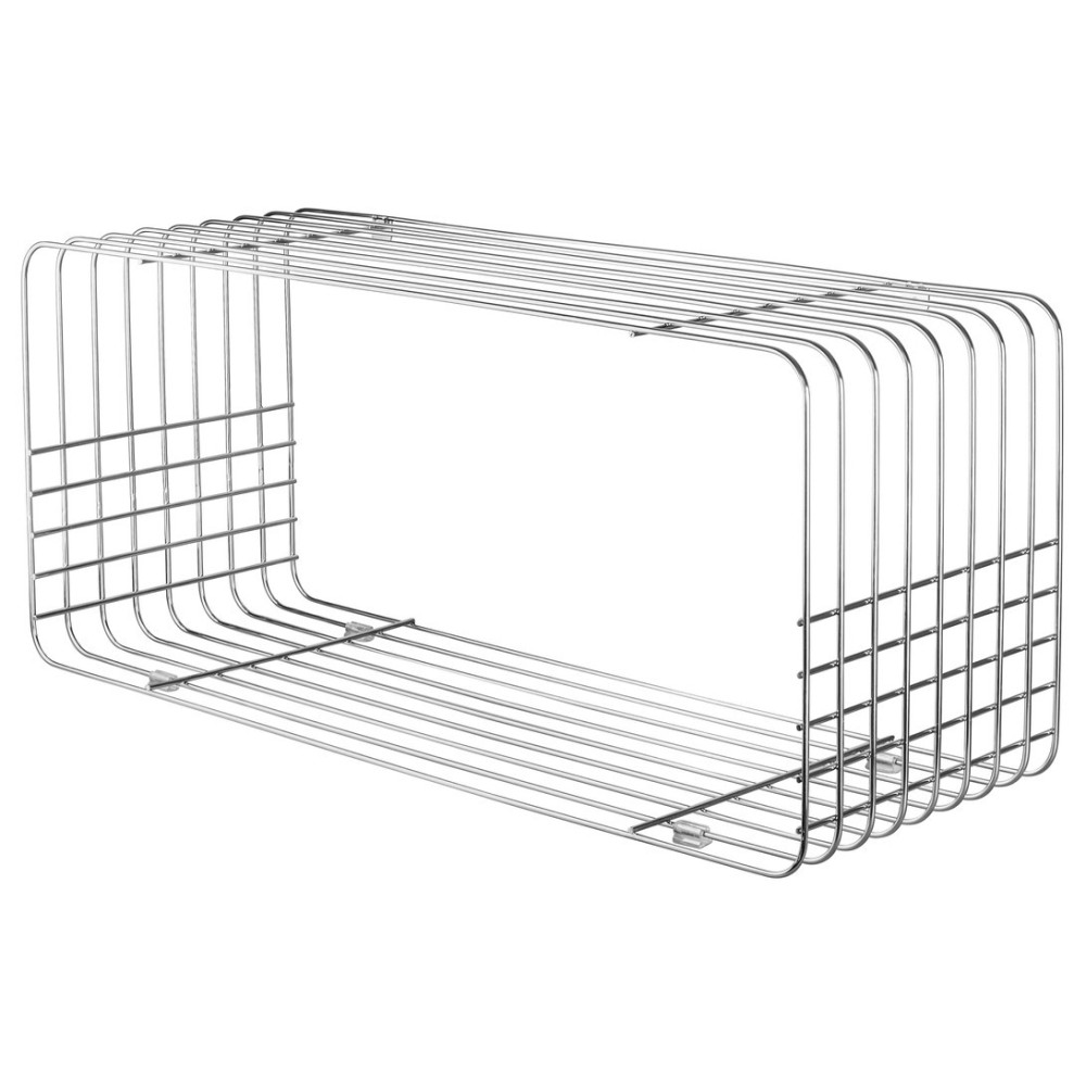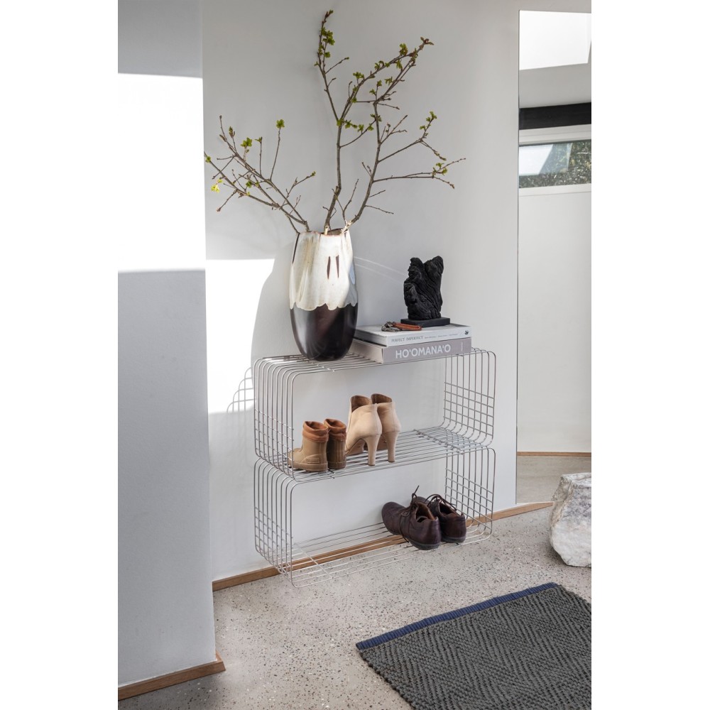 The chrome-plated WIRE shelf is a versatile storage solution with a light, industrial feel. It can be wall-mounted or placed directly on the floor, depending on your space and needs. Use it in the hallway for shoes, in the kitchen for storage, or in the bathroom for towels and baskets.