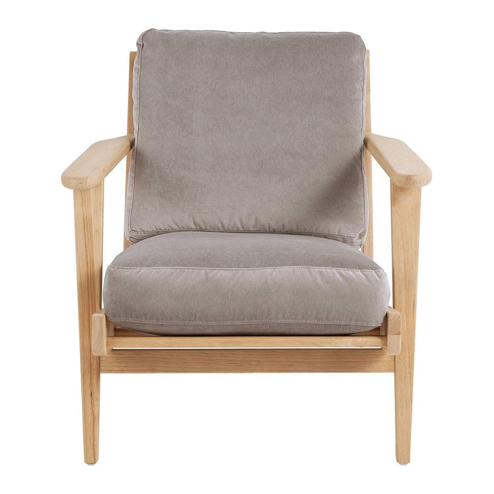 Let yourself be seduced by the warm, authentic silhouette of the JULES armchair. Blending elegance and simplicity, its irresistible luminous pearl-gray fabric blends perfectly with the light-colored rubberwood. This armchair will add a refined, timeless touch to your interior design.