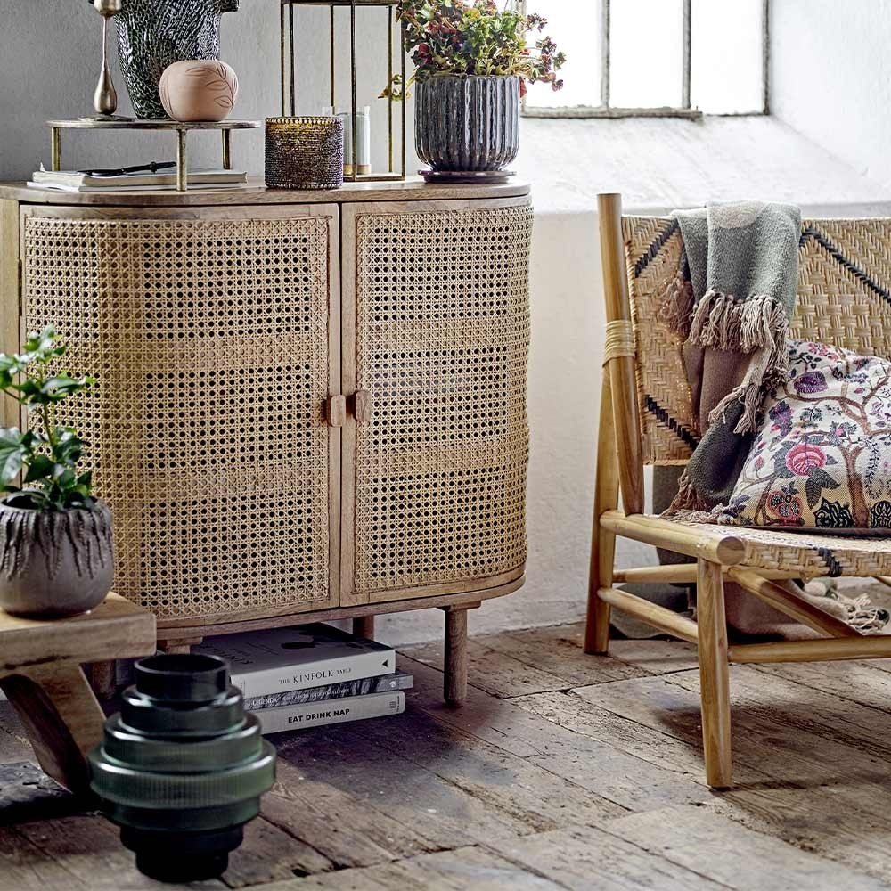 Bloomingville's Lennox armchair is made of solid teak wood with a black and natural graphic pattern. The armchair is perfect in front of your sofa or in your cozy corner.