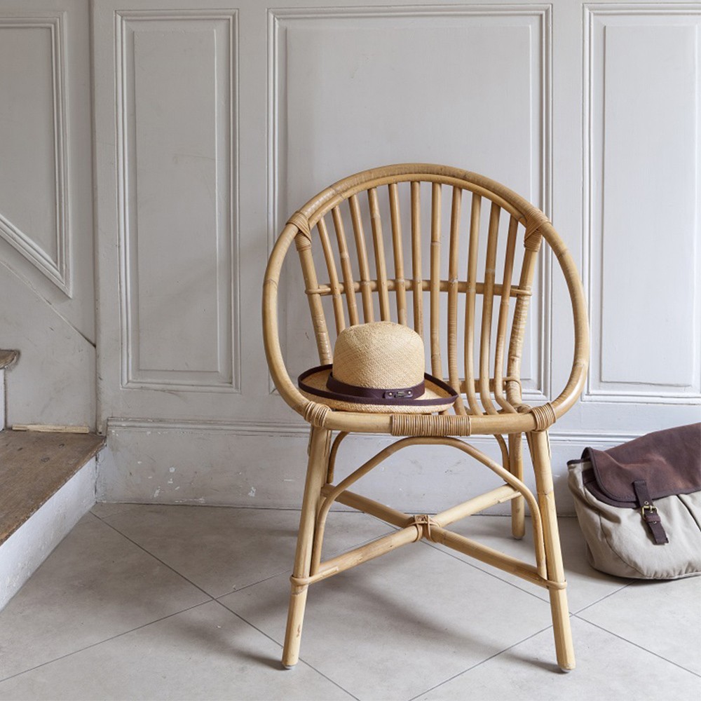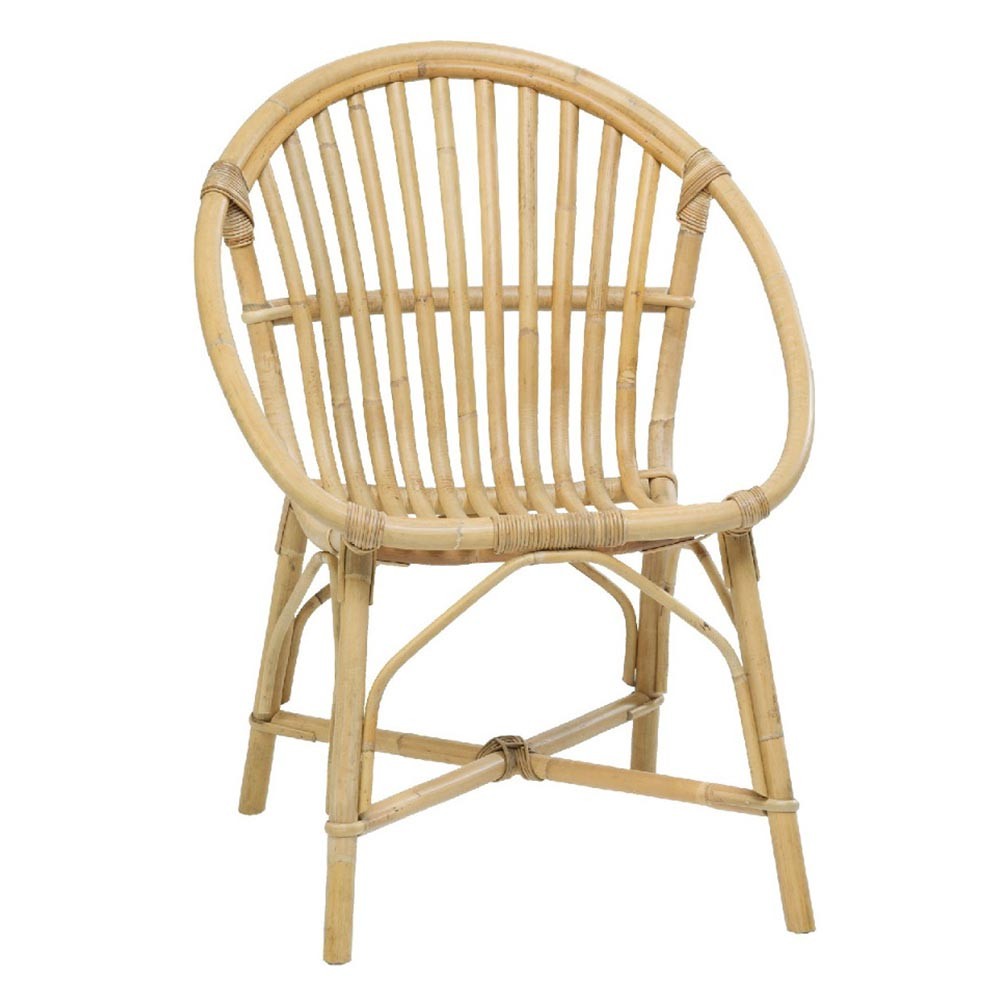 Incredibly strong and comfortable, the Bruno natural rattan armchair can have many different uses: living room or veranda accent chair, it is high enough to serve as a dining room seat. Thanks to its rustic construction, it does not fear a little tour on the terrace or in the garden on sunny days. This armchair is originally an armchair designed for café terraces in the 70s, an emblem of its time, it has been restated and simplified to meet new needs with wider and therefore less fragile nets, a single circle in rattan thicker than normal, reinforcement cross positioned very low. Since KOK has not changed anything from the period model, the Bruno rattan armchair will appeal to those nostalgic for the heyday of cafes and brasseries, and lovers of well thought out things made with heart and to last.