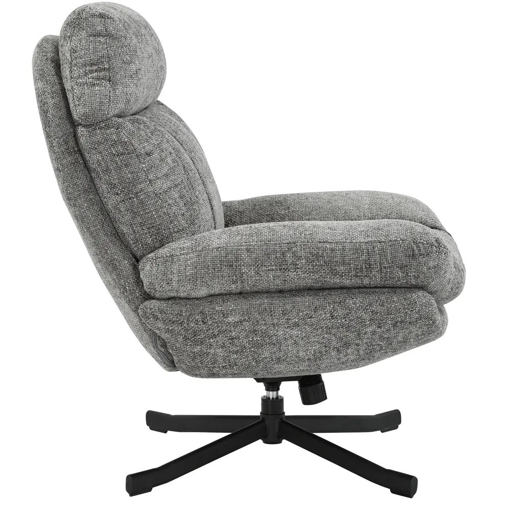 The "CHILL" armchair combines elegance and relaxation: thanks to its 360° swivel base and integrated reclining backrest, it offers optimum freedom of movement. Its comfortable textile upholstery (100% polyester fabric) and wide seat invite you to relax, while the metal and plywood structure ensures sturdiness and durability. Available in a range of colors (sand, light gray, blue, green), it blends stylishly into a contemporary living room, reading corner or cozy space.