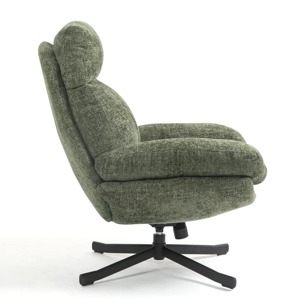 The "CHILL" armchair combines elegance and relaxation: thanks to its 360° swivel base and integrated reclining backrest, it offers optimum freedom of movement. Its comfortable textile upholstery (100% polyester fabric) and wide seat invite you to relax, while the metal and plywood structure ensures sturdiness and durability. Available in a range of colors (sand, light gray, blue, green), it's a stylish addition to any contemporary living room, reading corner or cozy space.