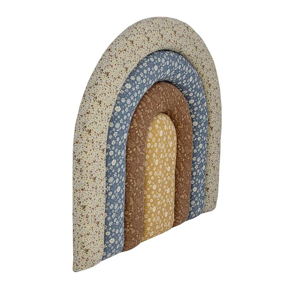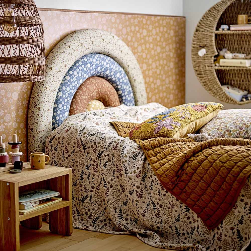 The Jo headboard from Bloomingville MINI is a must-have for any child's bedroom! Shaped like a rainbow, the headboard is made from cotton fabric with various floral prints in warm, muted colors. The arches are padded with soft material, so it's comfortable to lean against. Ready for wall mounting.