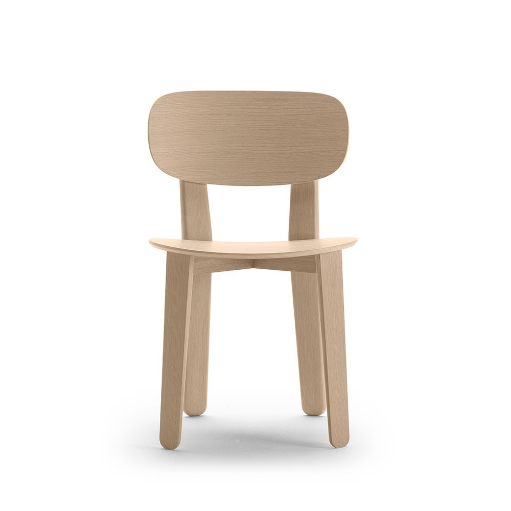 - Solid oak structure | Seat and back in multi-ply beech oak veneer or upholstered (fabric, imitation leather or leather) | As standard, polypropylene pads