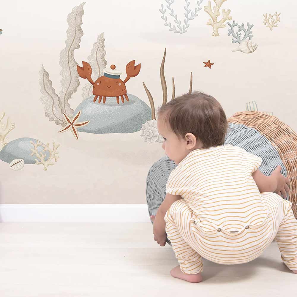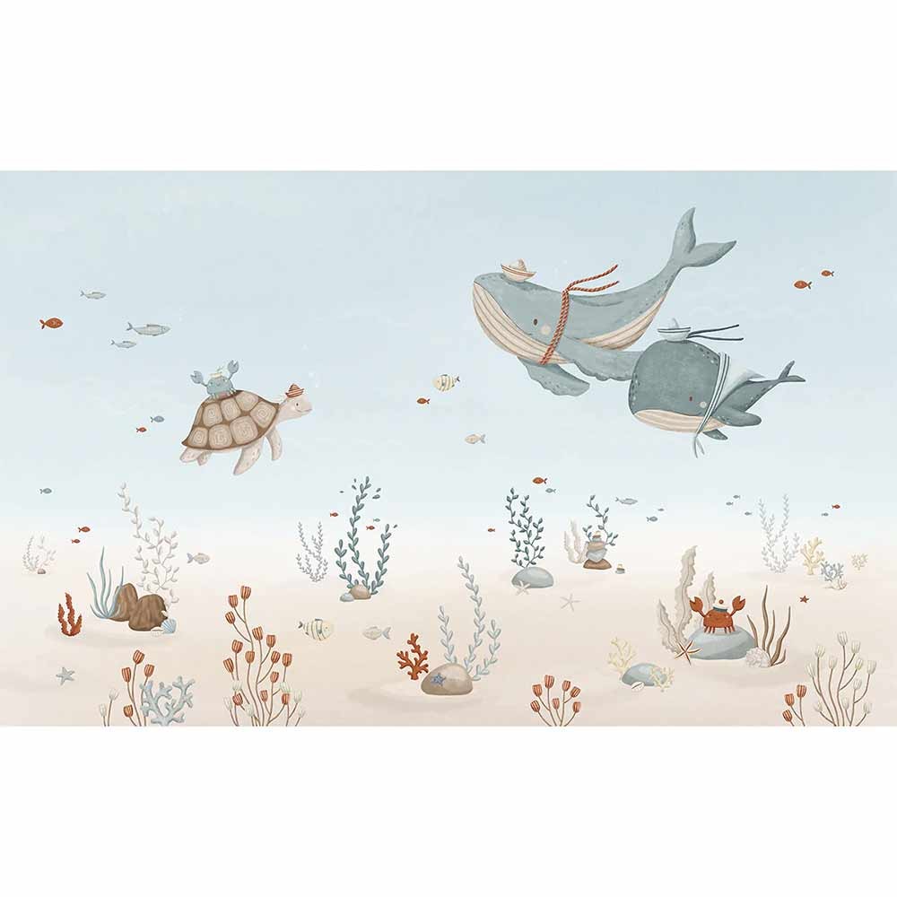 Discover "Les Baleines" panoramic wallpaper, which transforms your child's bedroom into an enchanting marine sanctuary. With its illustrations of whales, turtles and fish, this captivating decor in shades of blue and white creates a magical, soothing atmosphere, ideal for awakening imagination and curiosity.