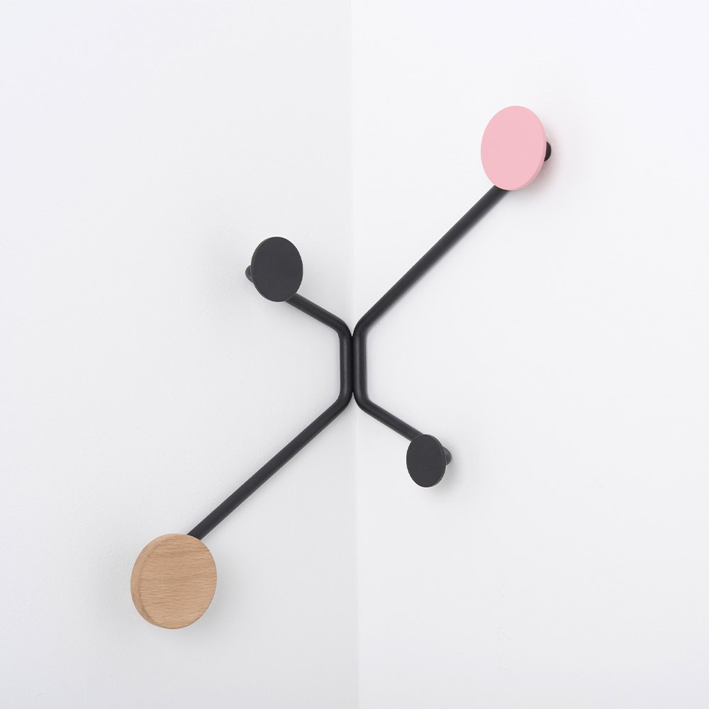 Pink hook interior corner wall coat rack by Gazzda