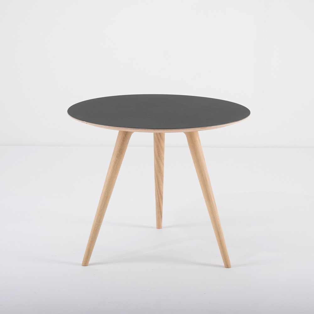 Place this Arp oak & black M side table in any corner of your home to dress it up. Play with simplicity with a single table or combine Arp tables of different colors and sizes. Available in 2 sizes and various colors.
