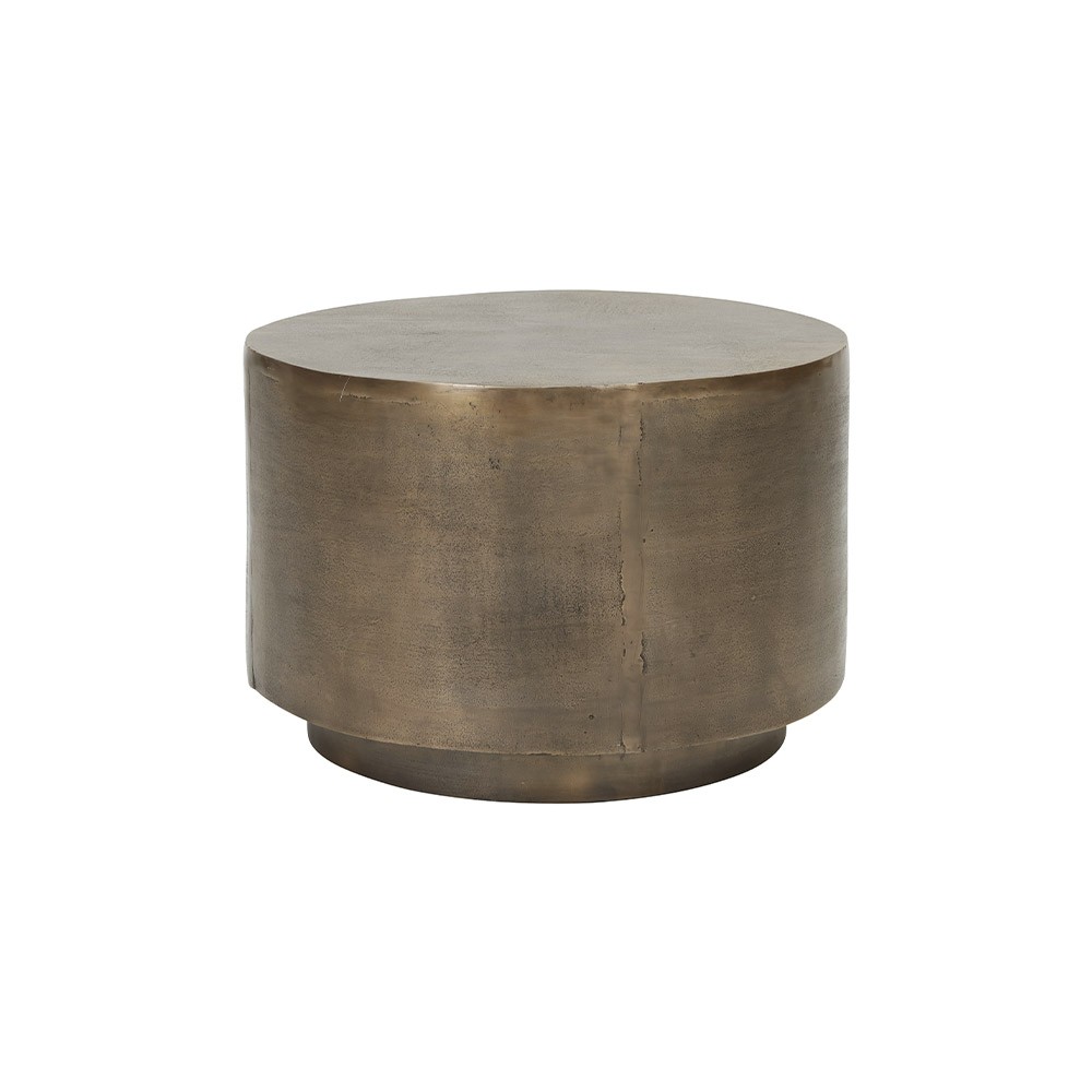Designed mainly in aluminum and golden brass for its finishes, this pretty little Rota coffee table, by House Doctor, is a delightful interior piece of furniture. Its modern and elegant look is sure to charm you, especially with its intentionally visible imperfections. Perfect integrated into your living room above a rug and covered by a vase, this small table is ideal in your home.