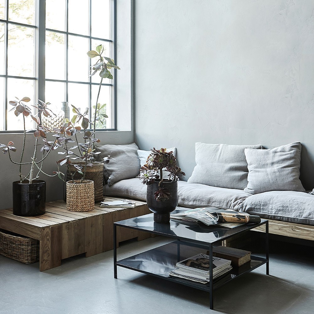 Constructed of teak wood, this pretty little Woodie coffee table, by House Doctor, is a delightful interior piece of furniture. Its modern and refined look is sure to charm you. Its natural color makes it a table that will fit perfectly into your living room, crowning a rug and decorated with a vase.