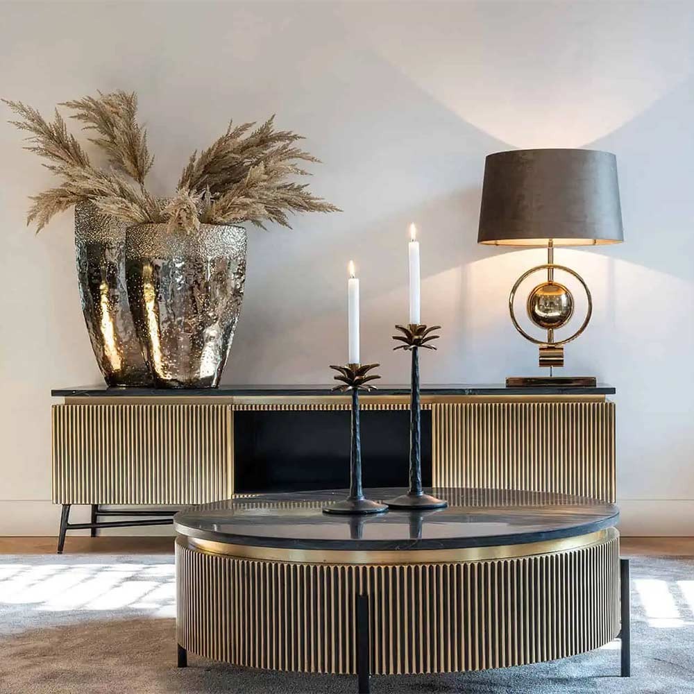 This Ironville coffee table, with its marble top, boasts a modern, elegant decorating style. Its wood frame and marble top make it both sturdy and durable.