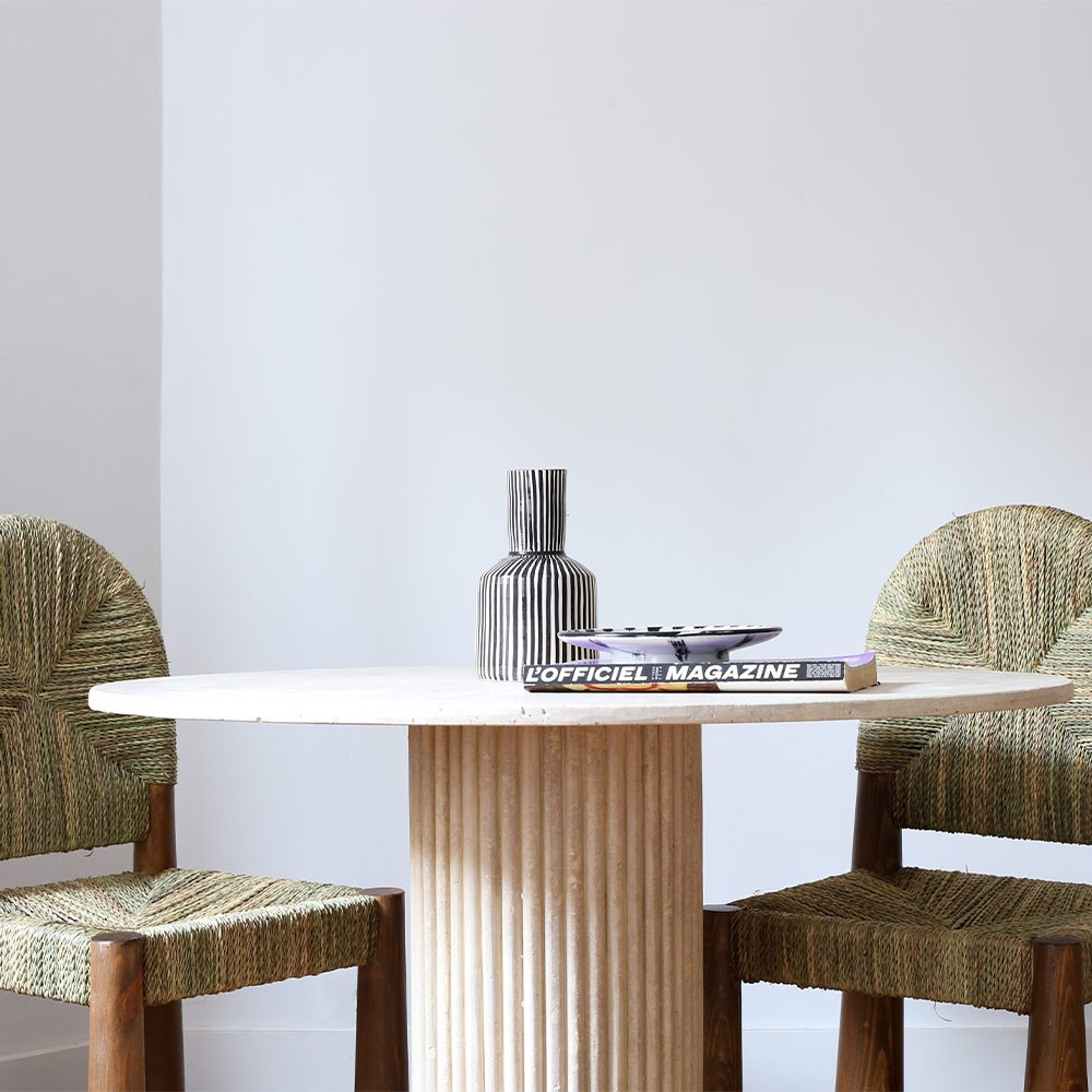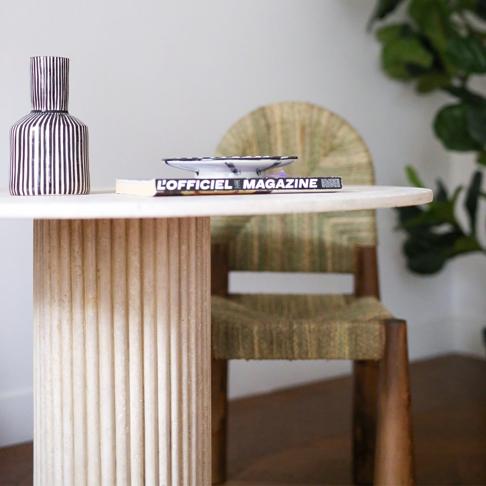 Travertine high table designed by THEM founder Marion and 100% handcrafted in Morocco in one of our talented partner workshops.