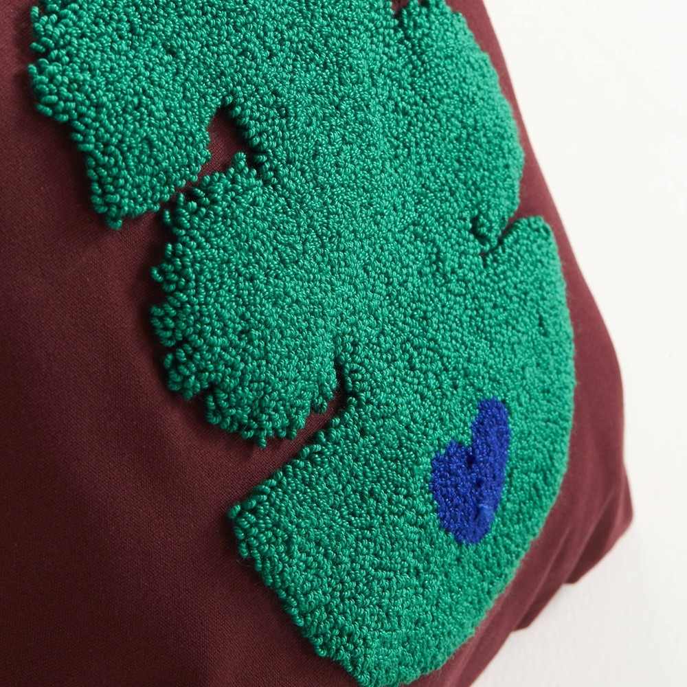 The NIDO cushions are made from wool and feature crocheted macramé ornaments. The cushions are produced in a small manufactory located in the Andean Reserva Entreaguas. Each cushion is unique and created using a complex manual process. The three ornaments designed by Sebastian Herkner are based on pieces of jewellery from the Bogotá Gold Museum, the Museo del Oro.