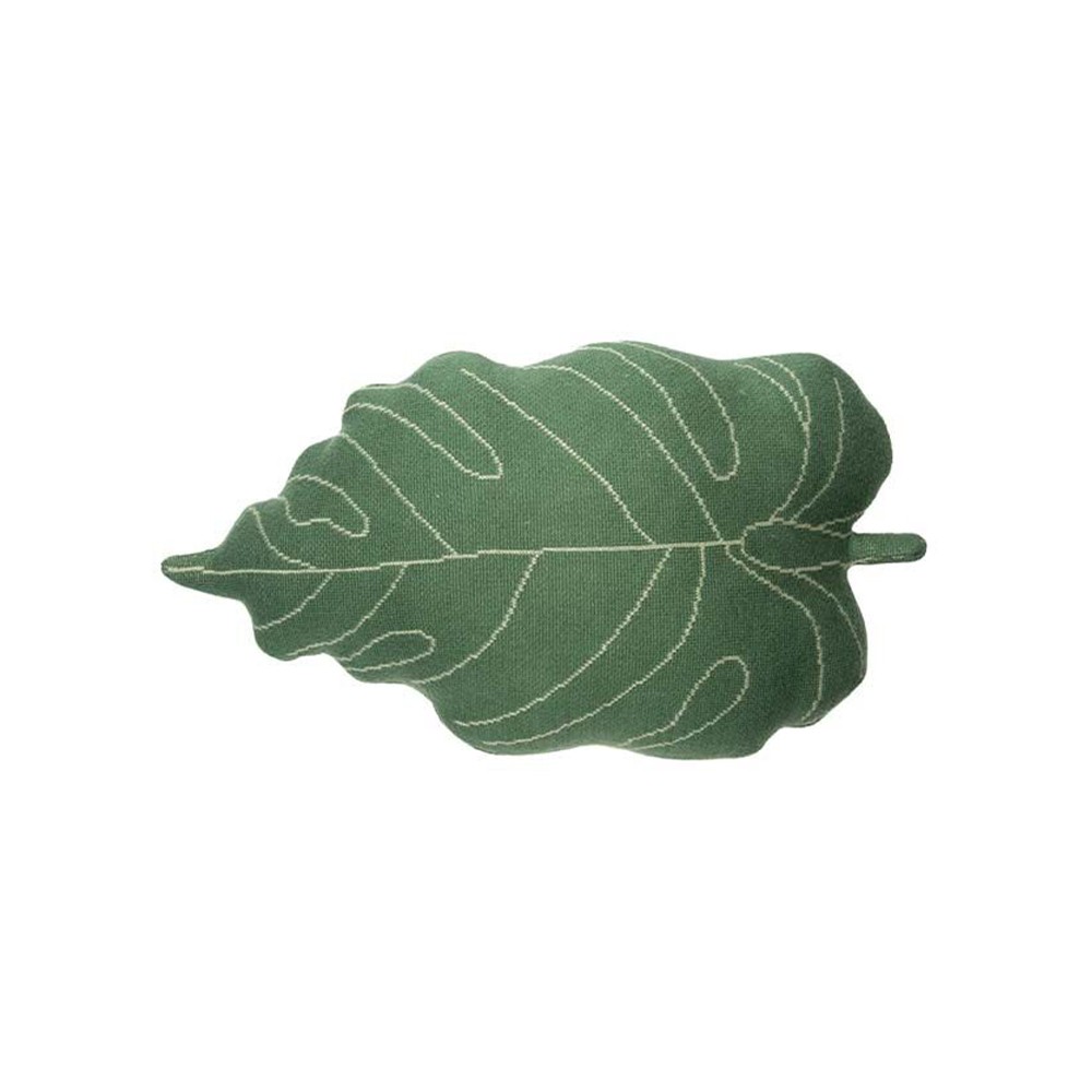 Discover the Baby Leaf knitted cushion by Lorena Canals in the shape of a Monstera leaf in green and light green colors. The exterior is made of soft 100-ton knit and filled with soft polyfill.