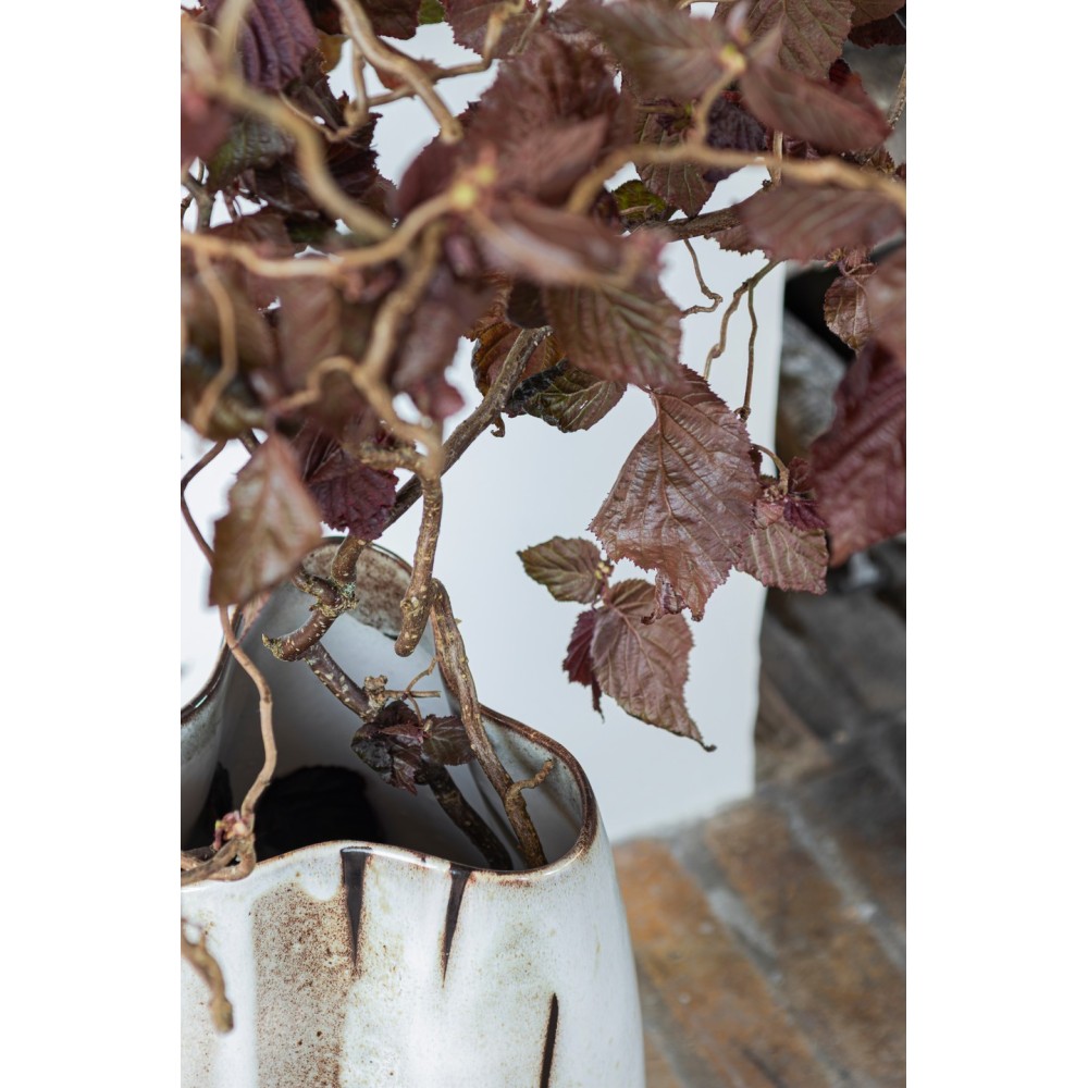 Mette Ditmer's BY HAND curved vase combines modernity with traditional craftsmanship. Its organic, asymmetrical shape lends it a playful touch. Its semi-matt dark brown base contrasts with a glossy off-white glaze that flows over the entire surface, creating gentle transitions in warm, earthy tones. The flowing glaze and natural variations make each vase truly unique.