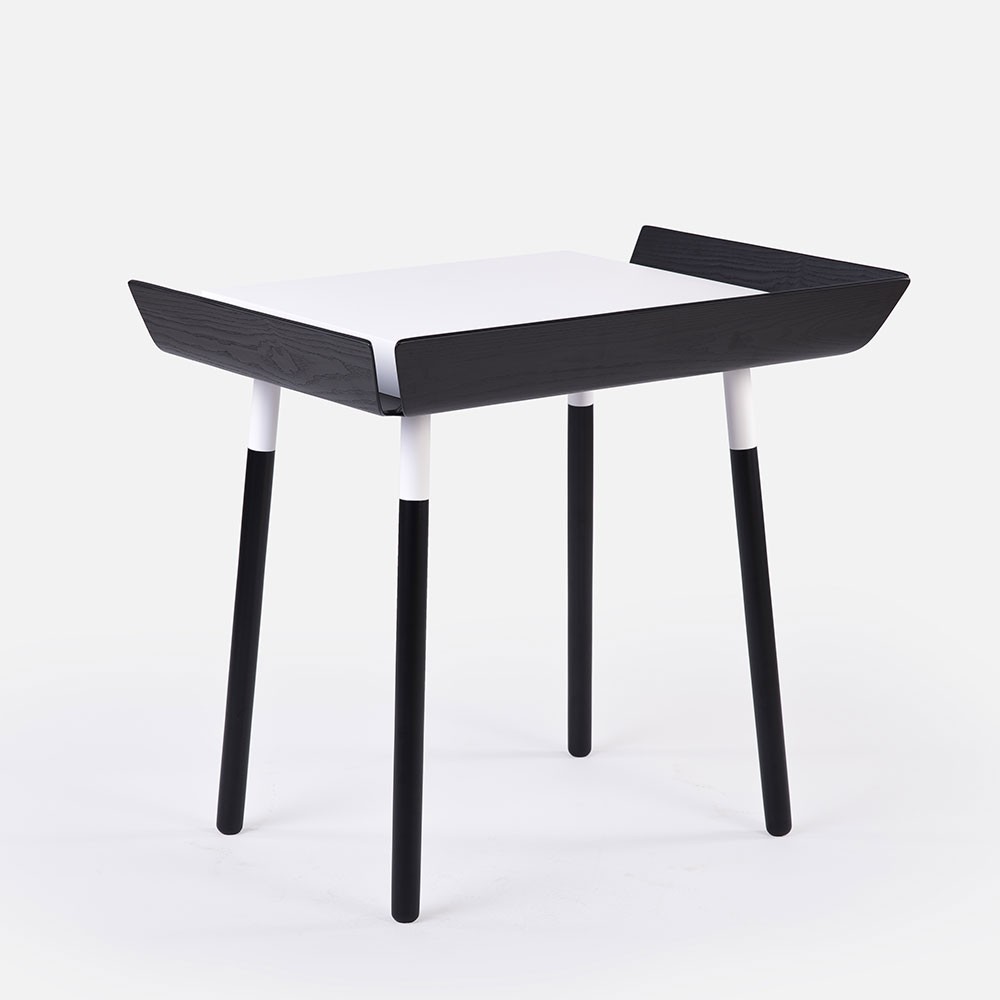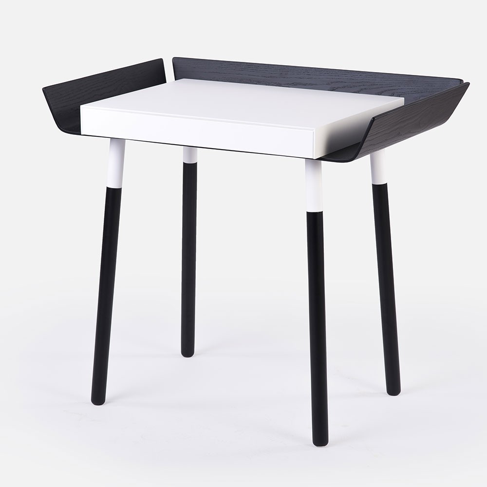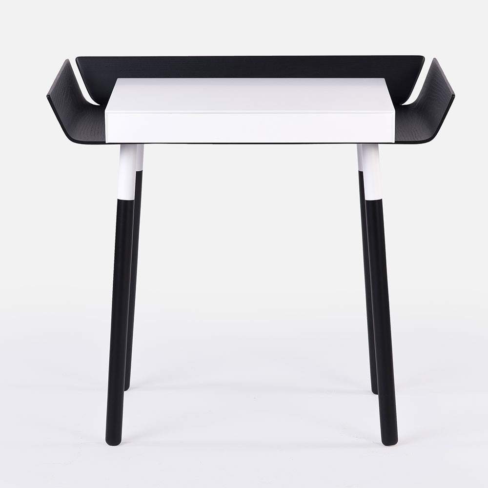 The My Writing Desk black S designed by EMKO, offers clever storage space. Its drawer hidden under its MDF tray and its "gutter" storage on the side of the desk make it an essential piece.