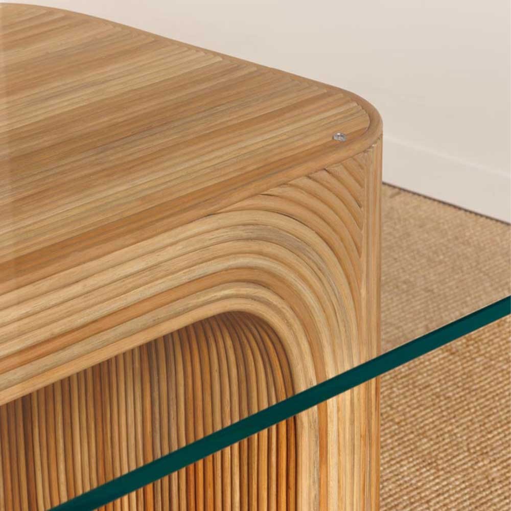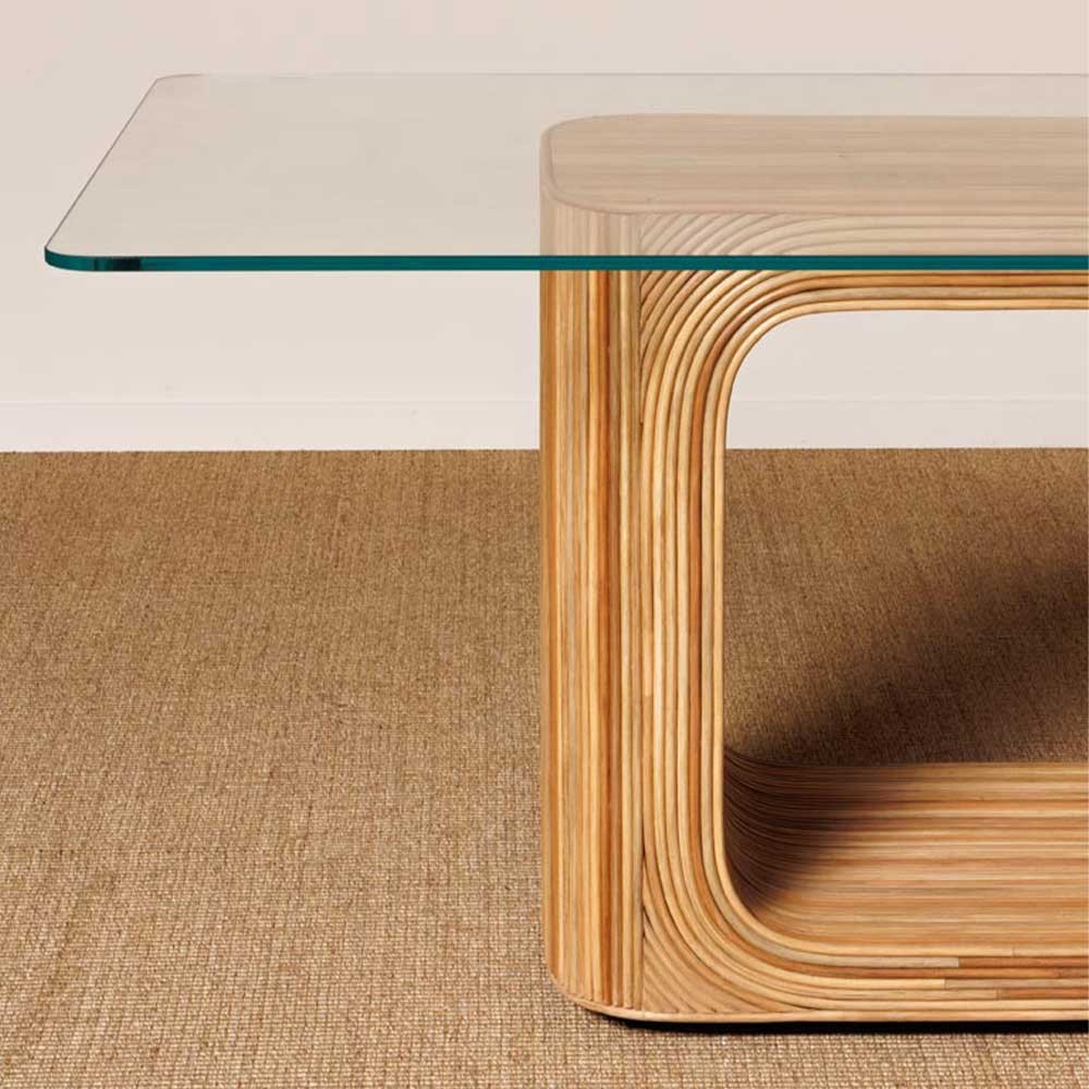 Bring a touch of modernity and refinement to your dining room with our rounded glass dining table. Its transparent glass top, with its soft, clean lines, creates a sensation of lightness and space, ideal for enhancing all types of interiors.