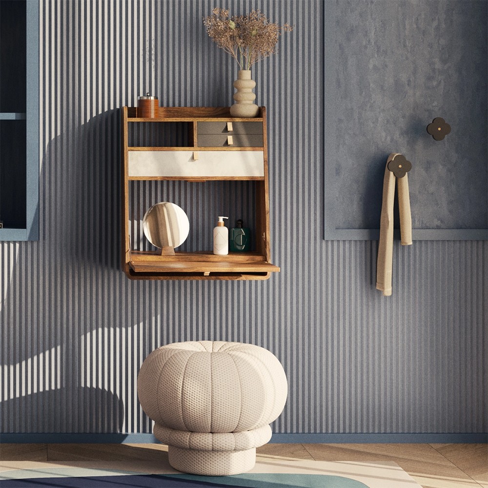 Gaston has all the makings of a big man, yet takes up so little space! A wall-mounted secretary, to free up floor space while keeping everything to hand, and hiding what you don't want to show. 3 drawers, a spacious niche for a computer, leather handles for style: Gaston is perfect for creating an office corner in a living room or bedroom.