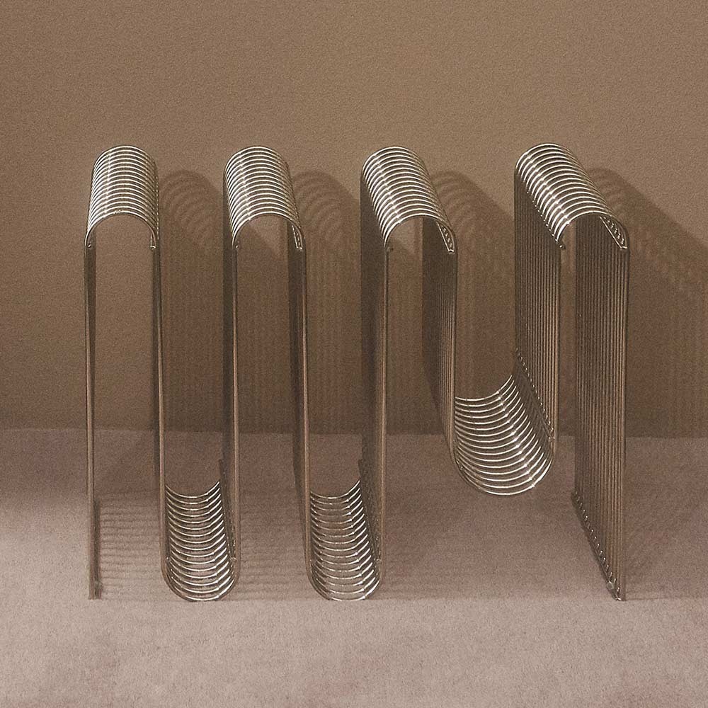 In an Art Deco style, the Curva magazine-holder silver is a real piece of art. Its iron rods dance to form a beautiful object that takes up the space with elegance and sophistication. The rounded and wired shapes are the distinctive features of the Curva collection by AYTM.