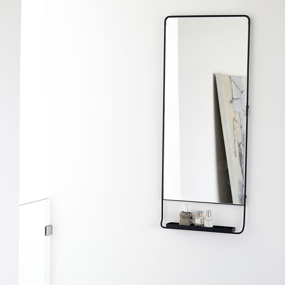 Opt for the Chic mirror with shelf from House Doctor, with its elongated design and practical shelf. The mirror has a beautiful, timeless design with rounded corners and a narrow black metal frame. Use the mirror in your hallway or bedroom. This mirror is not suitable for damp rooms.