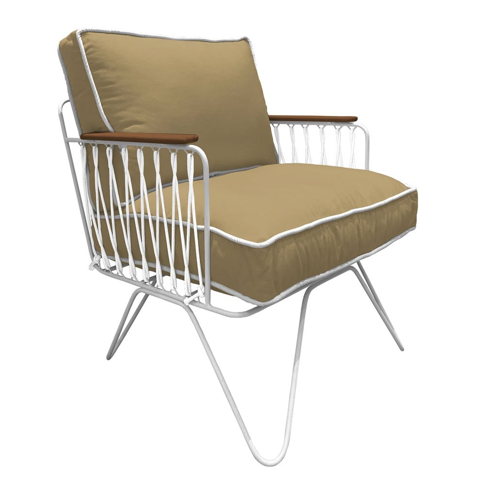 Comfortable thanks to its generous seat and its large soft backrest, its white cotton ropes evoke those of sailboats, while the water-repellent fabric with piping of its cushions recalls the deckchairs of the Côte d'Azur, cradle of the French Riviera spirit. that he releases.