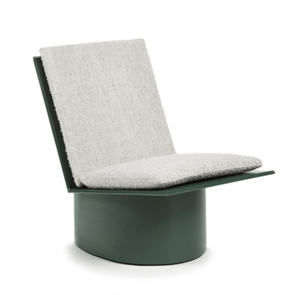 For Marie Michielssen, creating furniture always begins with a series of sketches on paper. She constructs the volumes with mathematical precision. The proportions must be perfect and adapted to the human body. For the Valerie low chair, she started with an elliptical base to which she added two rectangular planes, the seat and the backrest forming a perfect angle to allow comfortable sitting. She chose lacquered steel so that Valérie could be used both outdoors and indoors. The seat cushion (sold separately) adds extra comfort. The fabric is woven and handcrafted in Belgium and was chosen by Marie for its tactile effect. Valerie is available in three colors: white, gray or dark green. The matching cushions are white or gray.