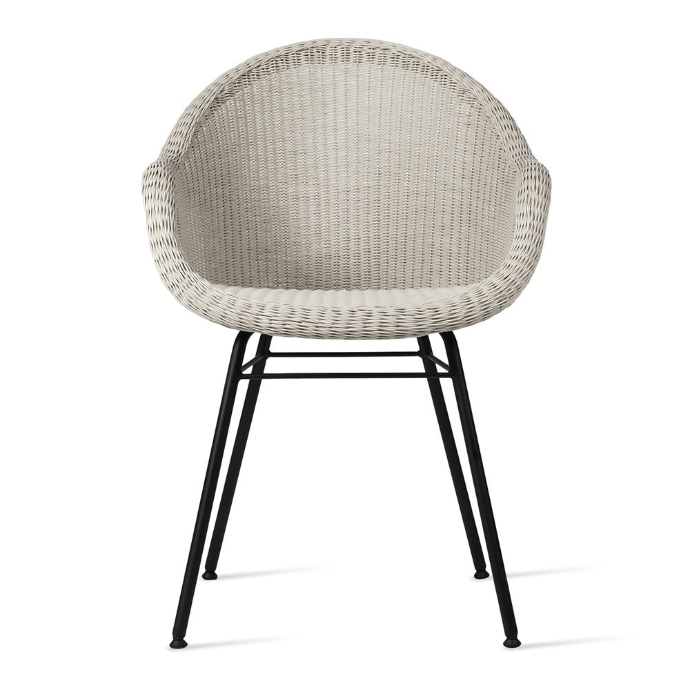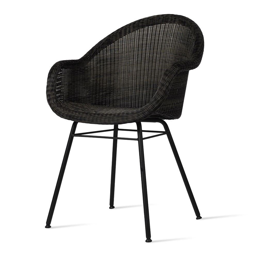 The Edgard dining chair steel A base combines delicate weave and sleek steel for a contemporary mix of materials.