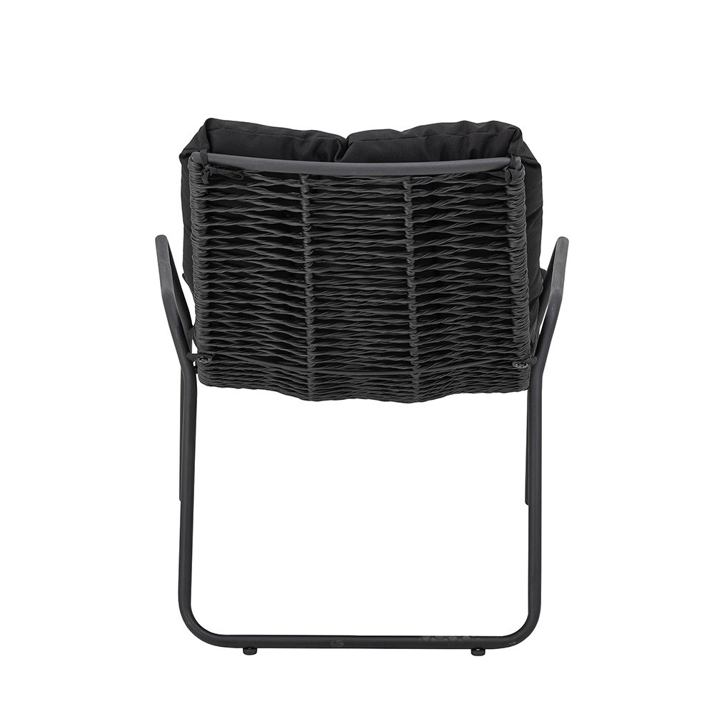 Discover the Boel lounge chair from Bloomingville. Theframe of the lounger is made of black metal and the back, seat and top of the stool are made of woven rope .