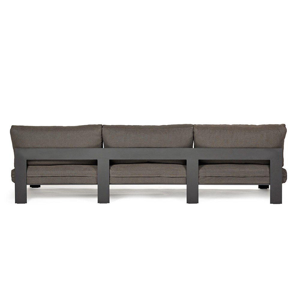 With its soft and comfortable look, this pretty three-seater shade outdoor sofa, by Bea Mombaers for Serax, is a product full of charm and contemporaneity. Composed of an aluminum frame and a dark brown fabric covering, this sofa will bring a cozy and elegant touch to your outdoor living room. Very functional, it can then be transformed into a larger sofa, a corner sofa or even a chaise longue, all is possible thanks to the many pieces of the Bea Mombaers collection allowing you to create sets according to your tastes and the assembly of your terrace. It will then allow you to welcome all your friends and family in a bright and warm environment. In addition, this product is available in several colors to offer you a wide choice of possibilities.