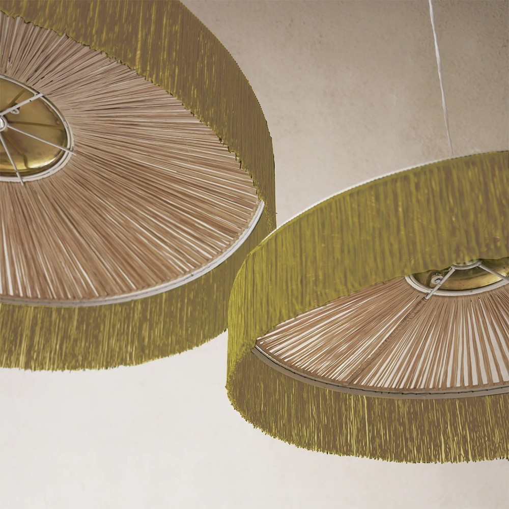 Mixing the naturalness of raffia, the raw aspect of metal and the softness of golden bangs reminding the warm rays of the sun, this beautiful Parasol suspension by Honoré has everything to please. It presents itself as a lamp with multiple textures, which allows it to find its place in many interior styles, where metals, plants or light details are predominant.
