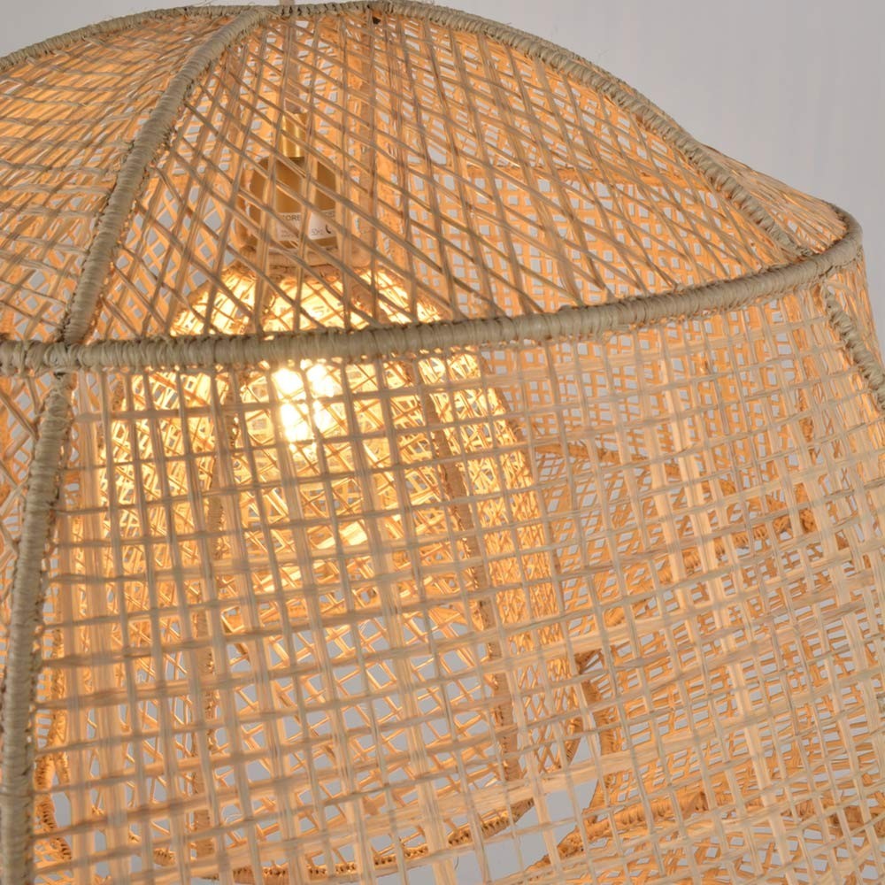 Odyssée natural raffia hanging baskets and lampshades are entirely hand-woven in Morocco. They draw their inspiration from ancestral fishing traps. Their double cage captures the light, creating exceptional lighting effects.