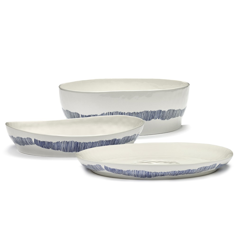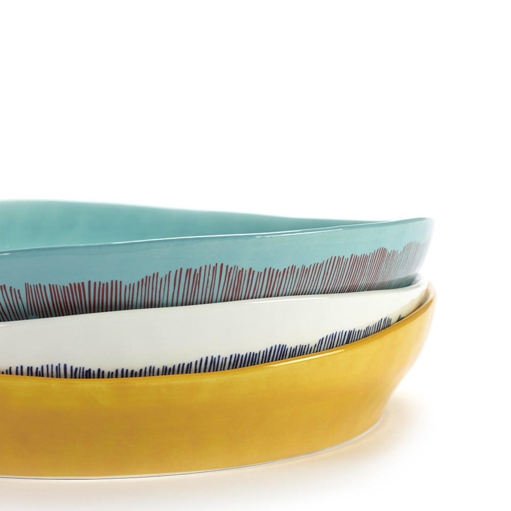 When we receive guests, we always like to bring out beautiful dishes, elegant sets and original dishes. The Feast collection, by Ottolenghi for Serax, fits this situation perfectly. The latter presents a large number of products with original colors and designs, something to make a good impression on your guests. Here, this white and blue Feast high-sided serving plate is ideal for presenting your dishes. You can place your meats and side dishes there during the meal, or even cakes and fruit for dessert. There is always a need to have beautiful and large containers on hand, and it is even better when they are modern like the ones in the Feast collection. They are also available in many colors and sizes to offer you a wide choice of possibilities, to find now on our site!