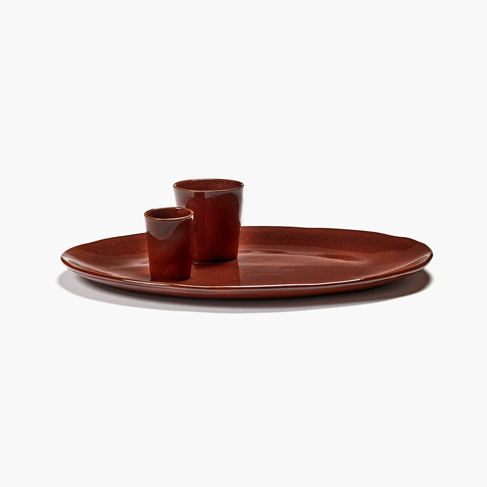 Choose the La Mère plates designed by Marie Michielssen for Serax. La Mère, Marie Michielssen's first line of ceramic dinnerware, is a loving ode to the (grand)mother figure and to women in general. Each shape is unique and hand-molded, andall pieces are finished in an off-white glaze or a warm, dark brown, almost black. As a third contrasting color, Marie has chosen a bold Venetian red.