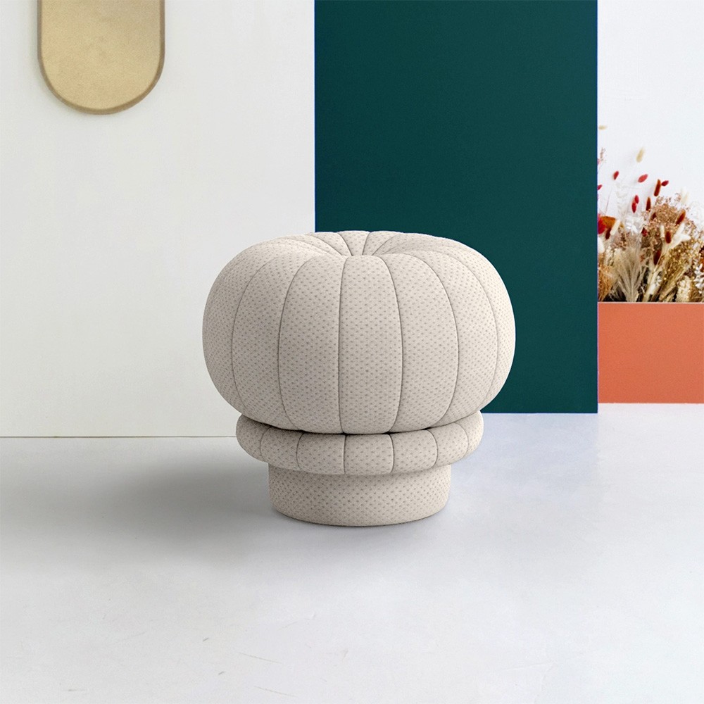 The Claudie pouf is round, plump and chubby, inviting comfort and complementing other seating in the living room. Perfect as a stool in a bedroom, in front of a dressing table for example. In ochre yellow, pearl grey or cactus green, the Claudie footstool complements both colorful and sober interiors.