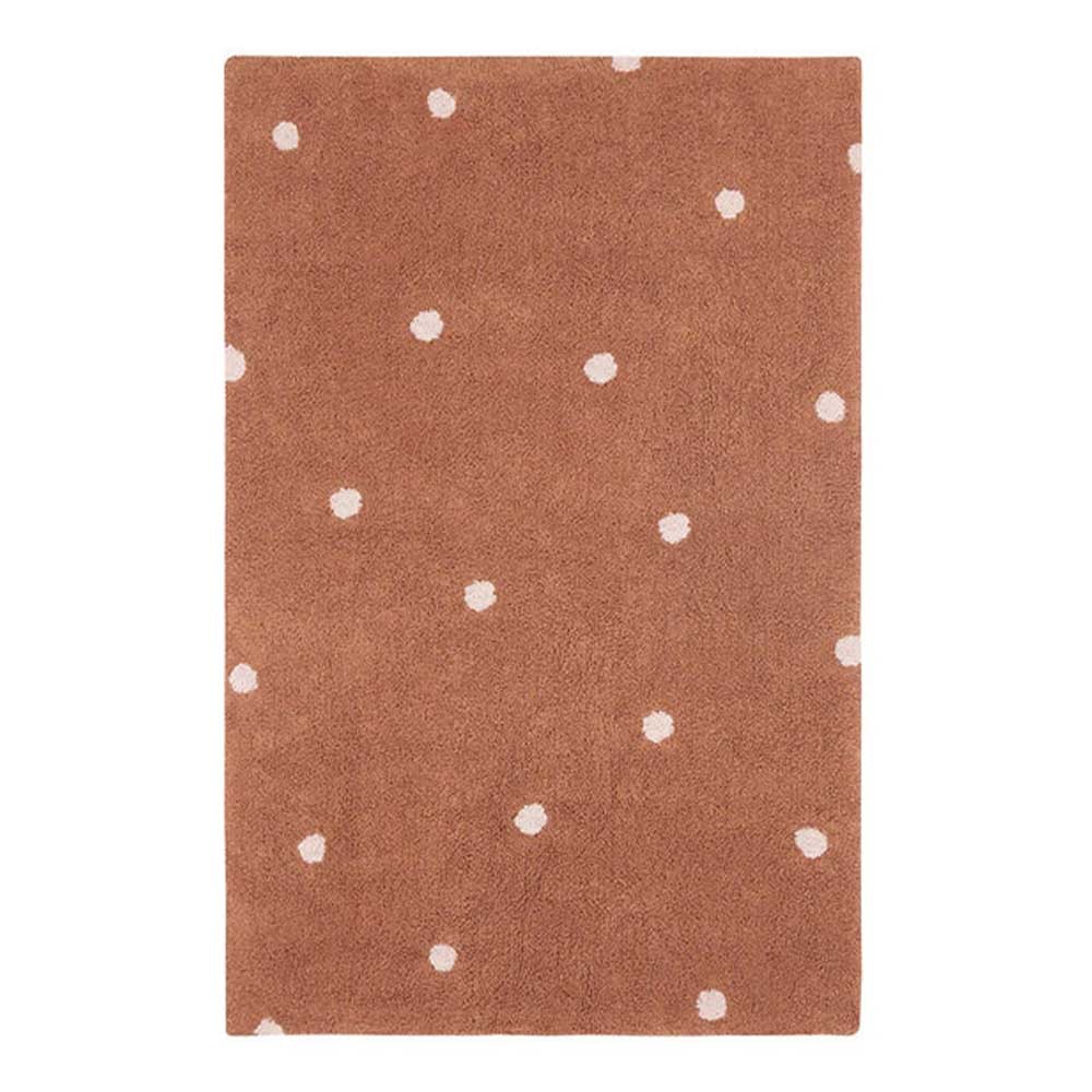 A soft, plush cotton rug with a polka-dot pattern that will never go out of style. Softly tufted in ultra-high-density cotton, the Mini Dot rug is available in three color combinations: Chestnut with natural polka dots, Pink with natural polka dots and Sage Blue with natural polka dots.