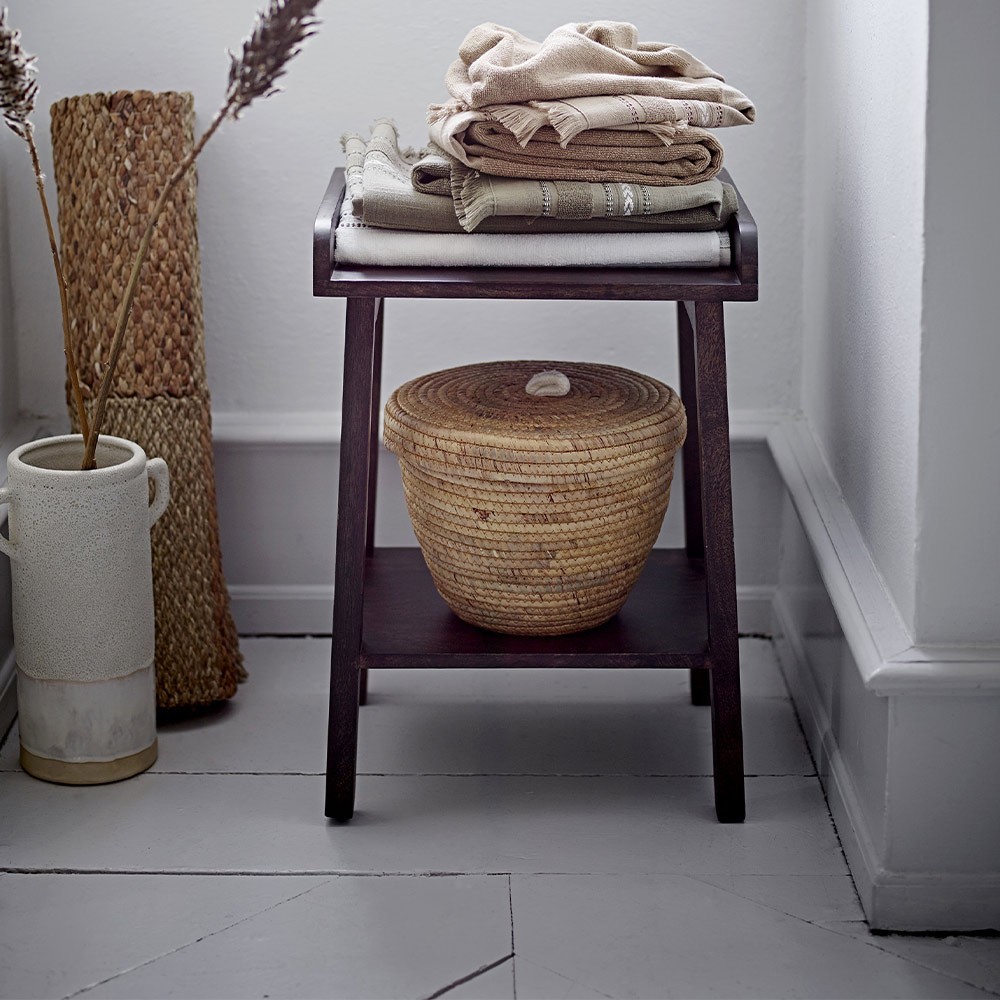 Check out the Davor rug from Bloomingville, a beautiful rug made of hand-pressed sea grass squares together in a decorative pattern that varies in color, making each rug unique. Seagrass is a natural material that goes well with rugs because of its durability. It will bring a warm touch to your home.