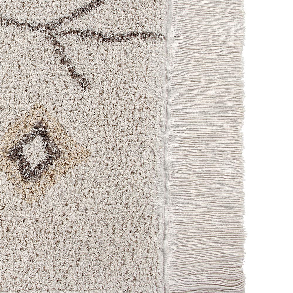 Lorena Canals proposes a wide scale of washable cotton rugs. The rug is made of cotton and with nontoxic dyes. With fringes on the side and natural color patterns, this washable rug Kaarol earth will be perfect in your living room or a bedroom. This rug has beautiful tones of olive, honey, soil brown, ivory and vintage nude.