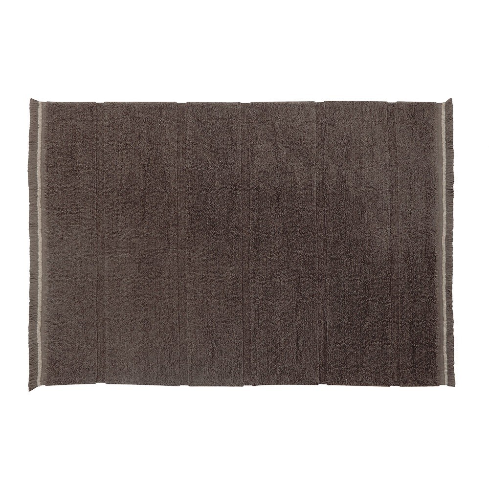 Handcrafted from sheep's wool, this lovely brown Steppe rug, by Lorena Canals, belongs to the large Les Moutons du Monde collection. The latter consists of many rugs handcrafted with sheep wool from all over the world. This collection offers durable, undyed, non-toxic and washable rugs. This rug, in a sober brown color, is a great classic to find in your home. Its short and extra-short hairs forming straight bands, combined with its fringes on the side, give us a feeling of natural softness. Ideal in a living room, a bedroom or an office, this rug will find its place perfectly in your home by bringing a cozy touch to the room.