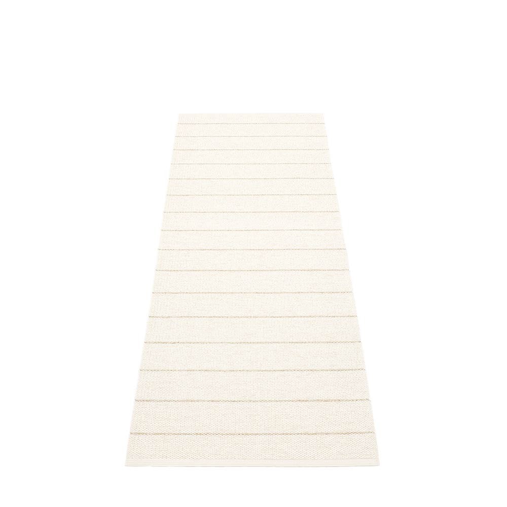 Discover the enduring charm of CARL, a true classic that effortlessly combines simplicity and innovation. With its simple stripes, CARL captures the essence of timeless design, while offering a unique two-in-one effect that lets you change the mood of any room by simply changing the colors. CARL introduces a revolutionary concept with its double-sided design featuring two different colors on each side of the rug. This innovative feature gives you the freedom to switch between colors with ease. Discover endless possibilities for creating the perfect ambience to suit your style and mood. You can rejuvenate your space in a jiffy and breathe fresh, new life into it. Embrace the versatility and timeless beauty of CARL, which will become a true centerpiece of your home and leave a lasting impression on all who enter. A hygienic, non-absorbent rug that won't trap dust, making it ideal for allergy sufferers Pappelina CARL Vanilla White plastic rug