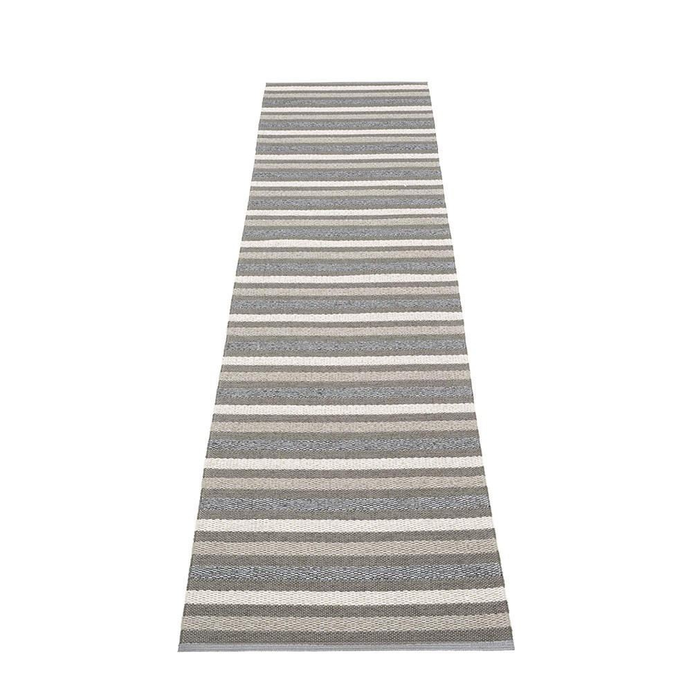 Made in Dalarna, Sweden. Woven on a traditional loom using wooden shuttles. Very practical and easy-to-care-for rug in Swedish manufactured, certified PVC. Reinforced, welded edges for strength and durability, with embossed Pappelina logo.