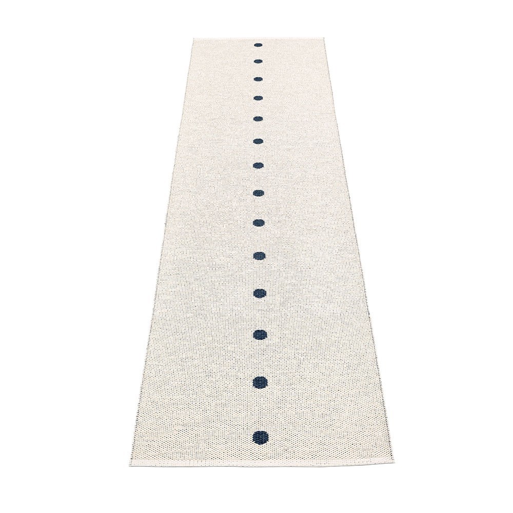 Made in Dalarna, Sweden. Woven on a traditional loom using wooden shuttles. Very practical and easy-to-care-for rug in Swedish manufactured, certified PVC. Reinforced, welded edges for strength and durability, with embossed Pappelina logo.