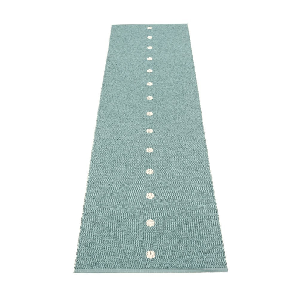 Made in Dalarna, Sweden. Woven on a traditional loom using wooden shuttles. Very practical and easy-to-care-for rug in Swedish manufactured, certified PVC. Reinforced, welded edges for strength and durability, with embossed Pappelina logo.