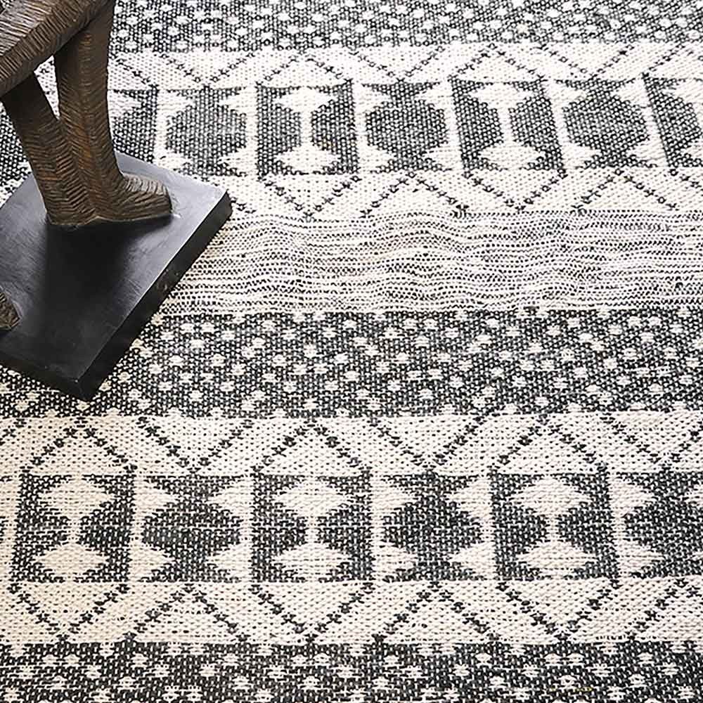 A traditional style handmade rug, the Zambezi rug will be a beautiful addition to your interior decoration. Its various patterns and sober colors make it a unique and easy to combine. You will be able to create the atmosphere that suits you, using this rug alone or with other rugs, for an accumulation effect. This hand-woven rug from India will add texture to your home, with a subtle touch.
