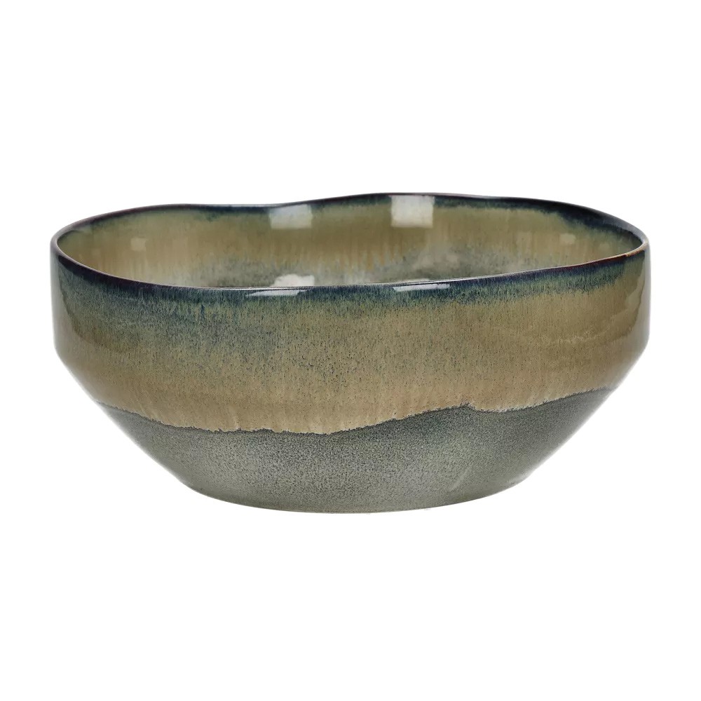 This eight-piece Nicky dinnerware set is made of stoneware, and derives its distinctive character from three different types of reactive glaze.