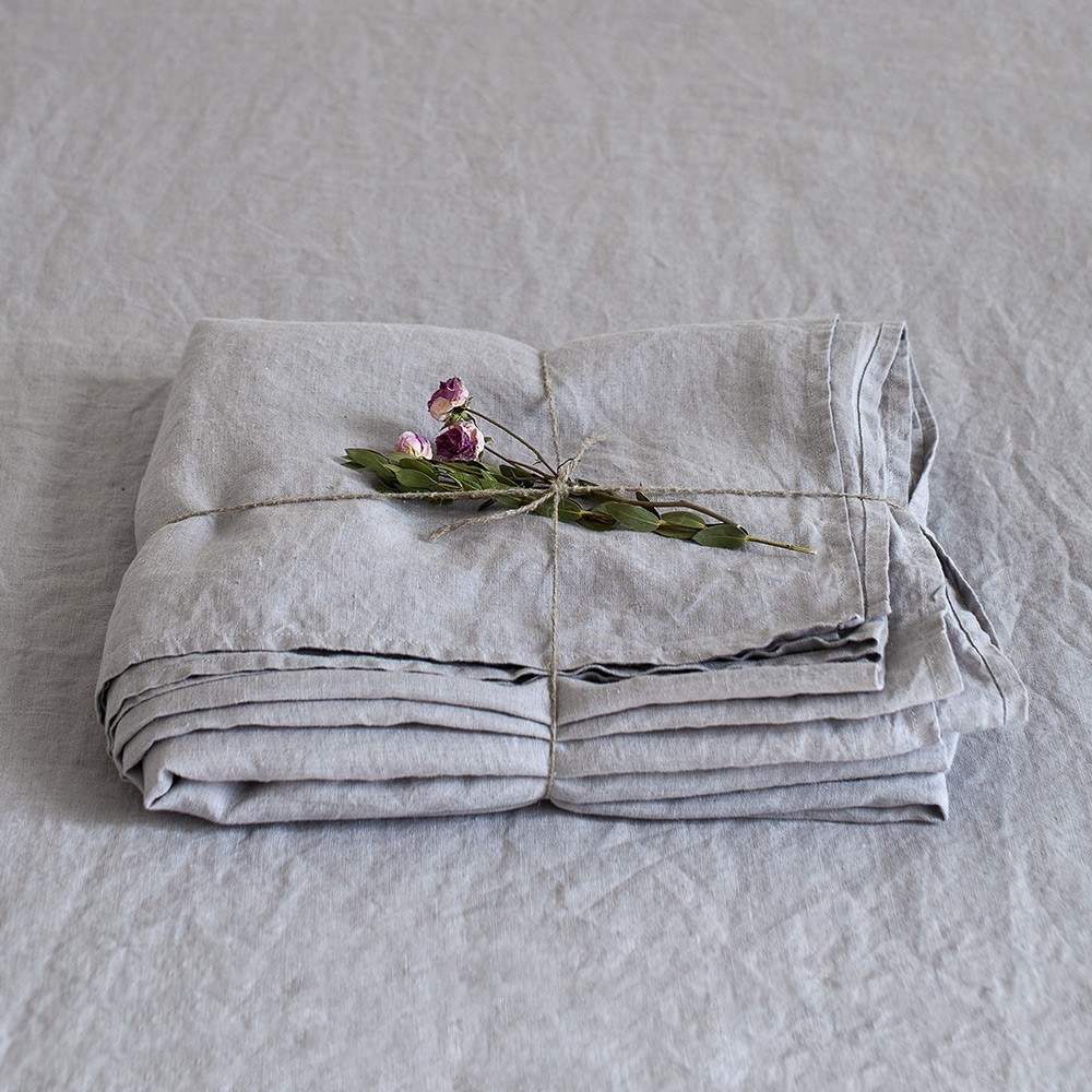 Light grey washed linen bed sheet by Linen Tales